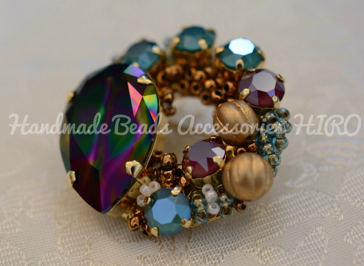大きなスワロフスキーの『CRY.レインボーダーク』という色がどこまでも魅力的で引きこまれそうな存在です。