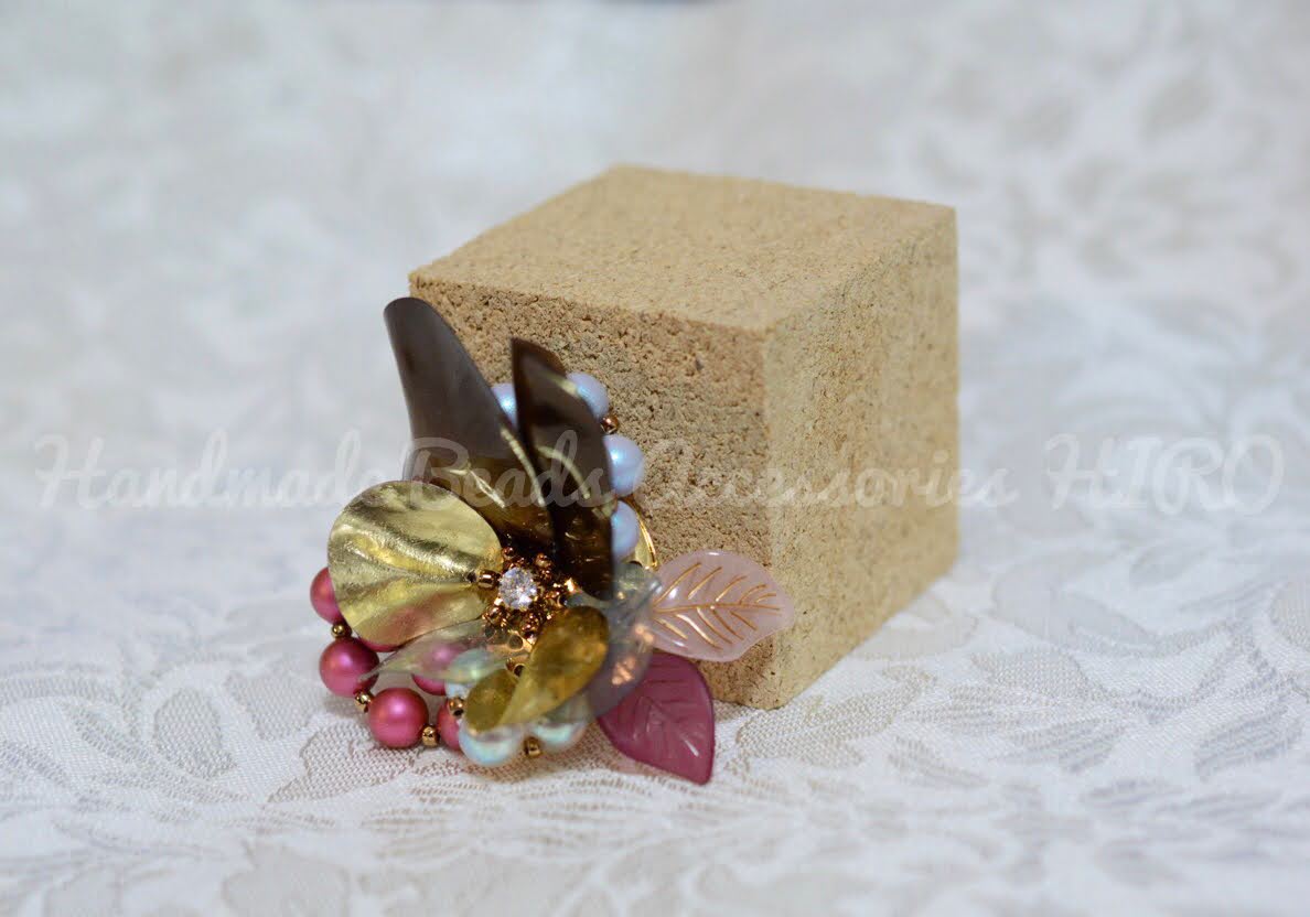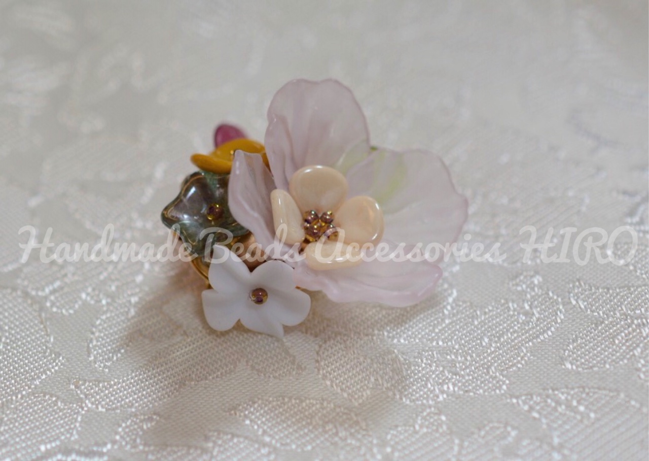 チェコビーズやドイツ製アクリルなどの、様々なお花を集めて愛らしく可憐なブローチに仕上げました。