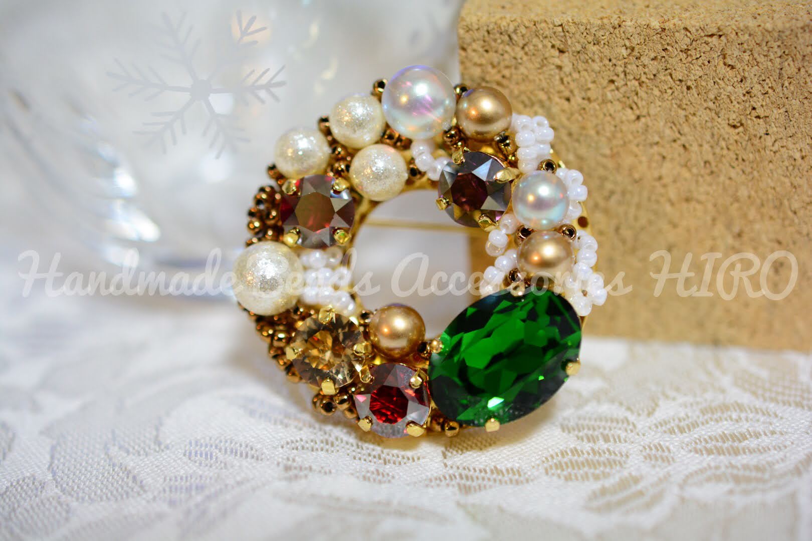 スワロフスキーをふんだんに使用したブローチは、クリスマスイルミネーションで彩られた華やぎの街に出かけたくなる雰囲気です。