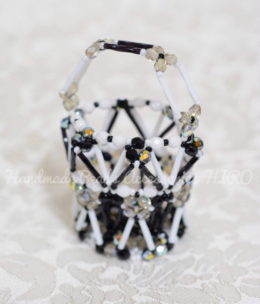 『ハンドメイドの図書館』で紹介していただいたミニかごバッグの色違いの作品で、モノトーンVer.とカラフルVer.です。